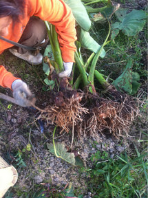 河北潟内の奥野農園に遊びに行ったら、美味しそうな里芋を収穫していました。